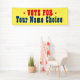 Say Vote For Candidate mit einem großen Wahlbanner. Rot und Blau.