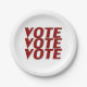 Die Abstimmung über die moderne Typografie rot-weiß Party Papier Teller. Roter Text auf weißem bearbeitbarem Farbhintergrund.