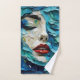 Keywords: abstract impasto painting, tactile texture art, female face artwork, ocean waves background, blue and green hues, red lips painting, oil on canvas, contemporary abstract art, textured surface painting, modern expressionism.