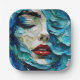 Abstract art painting female face ocean waves pappteller