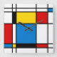 Abstract artsy wall decor clocks with Mondrian inspirred artistic design in primary colors that will liven up any modern decor. A beautiful household design for your kitchen, family room, or any room in your house you want to add some character and style in an artistic way.