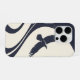 Abstract minimalist phone case featuring a flying bird silhouette with flowing curved shapes in navy and cream tones. Clean vector artwork with a modern aesthetic, designed for Apple iPhone 16 Pro.