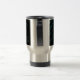 Light blue abstract geometric graphic on stylish and modern, personalized travel mug.