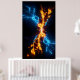 Transform your room into an epicenter of power with this breathtaking abstract energy clash poster. This vertical masterpiece captures the exact moment when intense, electric blue plasma collides with roaring, golden-orange fire against a pitch-black background. The sheer dynamic energy and glowing embers radiating from the center make this artwork an absolute showstopper. It is the ultimate statement piece for a gamer's den, a teenager's bedroom, or a modern man cave. The high-contrast aesthetic perfectly complements dark interior themes and RGB lighting setups. By choosing this piece, you are not just hanging a picture; you are making a bold declaration of style and passion for sci-fi and fantasy elements. Available as an Instant Download, you can get this high-resolution artwork immediately. Print it at home or at your local print shop in any size you need to perfectly fit your frame and space. Bring the ultimate battle of elements to your walls today!