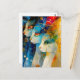 Abstract cat portrait set against a vibrant galaxy postkarte