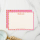 This baby shower thank you note features a soft cream front framed by a playful pink and orange checkerboard border with clean serif typography. The warm, modern color palette feels cheerful and polished while leaving plenty of space inside for a personal message. Designed to coordinate easily with colorful and contemporary baby shower themes. Personalize the name to create a thoughtful, cohesive way to thank guests after the celebration.