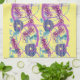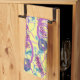 Abstrakte Design Küchenhandtücher. Lila und gelbes Design. Passen Sie Ihren Namen an!