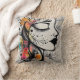 A stylish throw pillow featuring an abstract female art design with beautiful colors, perfect for modern and artistic home décor