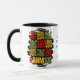 Stylish BLACK HISTORY MONTH CENTENNIAL personalized mug, celebrating its centenary from Negro History Week to Black History Month. Design shows red, gold and green Matisse-inspired abstract florals. Bold typography reads #BHM100 in red, yellow and green. In the middle, you can PERSONALIZE your BHM centenary message. Ideal souvenir mug to celebrate 100 years of Black History Month.