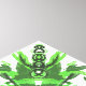 This graphic art illustration has a four part repeat pattern with fun freeform whimsical art elements to it. Greenish black chalk crayon rough crackled lines highlight the translucent watercolor painting style of the green flowers and leaves throughout.