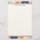 The design incorporates abstract floral patterns in shades of blue, peach, and white. A rose gold border frames the main writing area, which includes placeholder text for customized names. You can easily modify the text, font, and color palette to suit your preferences.