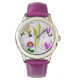Kinderuhr aus Edelstahluhr mit lila Lederarmband