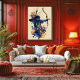 This abstract fluid ink artwork captures an archer in the act of drawing a bow, surrounded by flowing layers of blue, gold, and warm hues. The composition emphasizes focus, balance, and controlled movement while maintaining a clean, contemporary aesthetic. Ideal as modern wall art for interiors, studios, and creative environments.