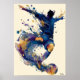 This abstract fluid ink artwork depicts a soccer player in motion, interacting with the ball through flowing layers of blue, gold, and violet. The light background enhances contrast and elegance, allowing the fluid textures to stand out. Designed as refined wall art, this piece blends contemporary abstraction with energy and movement, making it ideal for modern interiors, studios, and creative spaces.