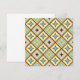 Abstract geometric pattern with diamond shapes in pastel colors. Each contains a star-like motif in teal, orange, or brown. Retro and symmetrical design.