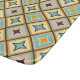Abstract geometric pattern with diamond shapes in pastel colors. Each contains a star-like motif in teal, orange, or brown. Retro and symmetrical design.