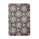 Abstract geometric pattern with layered pentagons and triangles in beige and teal on a dark brown background, creating a retro, symmetrical feel.