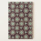 Abstract geometric pattern with layered pentagons and triangles in beige and teal on a dark brown background, creating a retro, symmetrical feel.