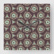 Abstract geometric pattern with layered pentagons and triangles in beige and teal on a dark brown background, creating a retro, symmetrical feel.