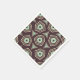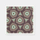 Abstract geometric pattern with layered pentagons and triangles in beige and teal on a dark brown background, creating a retro, symmetrical feel.