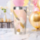 Abstract Gold Stripes and Pink Swirls Personalised Thermobecher