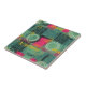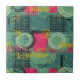 A bold grunge pattern ceramic tile featuring a layered collage of geometric shapes, stenciled circles, rough squares, crosshatch grids, and fragmented text over a distressed, paint-splattered background. The design blends teal/petrol green, magenta/hot pink, and yellow with black and white accents, creating an acid-wash, street-art vibe. It has gritty textures, hand-drawn elements, and retro-urban aesthetic.