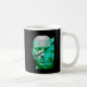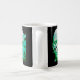 Rendered in a refined modern abstract style, the design avoids characters, trends, and text. The restrained palette of white and silver with cool cyan tones and subtle warm highlights stands out cleanly on dark backgrounds, making this mug visually striking yet understated for daily use.