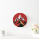 Modern Abstract Mountain Range Design wall clock featuring, a Red mountain range with black, gold and white accented peaks on a red background.