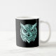 This abstract owl identity coffee mug features a symbolic split-face design representing awareness, perception, and quiet intelligence. One side of the owl appears smooth and composed, while the other is subtly fragmented with controlled geometric or cosmic elements, expressing layered identity through internal structure rather than movement.