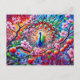 Abstract Peacock with Peach Tree in Colorful Paint Postkarte