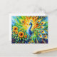 Abstract Peacock with Sunflowers in Painting Postkarte