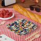 Primary color abstract party pattern with the addition of beige and noir for the sophisticated fun party design