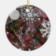 This ceramic ornament features an abstract design in festive holiday colors enhanced with wintry snowflakes. Get into the holiday spirit with this beautiful decoration.