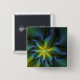 Abstract Star, Shiny Blue Green Golden Fractal Art Button