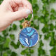 Llavero redondo premium grande con un diseño ondulado abstracto en tonos azules con efecto metal fundido.