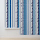 Diseño en color blanco con líneas verticales en tonos azules y brocado abstracto.
