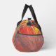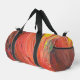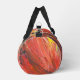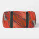 Rich reds dominate the surface, balanced by warm earth tones and flashes of green, creating depth and visual tension.