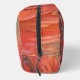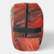 Rich reds dominate the surface, balanced by warm earth tones and flashes of green, creating depth and visual tension.