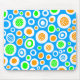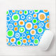 Ein ansprechendes handgezeichnetes abstraktes Design, bestehend aus runden Formen in Weiß, Orange, Grün und Blau.