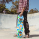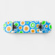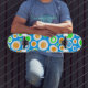 Ein ansprechendes handgezeichnetes abstraktes Design, bestehend aus runden Formen in Weiß, Orange, Grün und Blau.