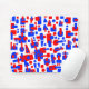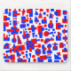 Ein originelles, abstraktes Design aus blau-roten Formen.