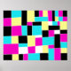 Originelles abstraktes Design aus unregelmäßigen Rechtecken und Quadraten in Rosa, Gelb, Zyanblau und Schwarz.