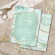 Dieses koordinierende Hochzeitsfest-Set mit abstrakten Agatmustern, texturiert mit Imitat-Kristallen und Highlights in glitzernden Imitaten Goldfolie sorgt für Glamour und Auftrieb. Auffallende Farbkombinationen, wie diese Suite mit ihrer weichen Pastellpalette von minzgrün bis aquamarin blau, schaffen den Hintergrund für die Stücke in dieser koordinierten Kollektion. Diese elegante Bridal-Dusche-Einladung enthält alles oben, mit einem sechseckigen, halbtransparenten Etikett in Minzgrün, um Ihren Text zu halten. Eine Vorlage wird bereitgestellt, um Ihre Ereignisdetails einfach hinzuzufügen. Sehen Sie sich den Link Sammlung auf dieser Seite an, um alle passenden Elemente in diesem schönen Design zu sehen, oder suchen Sie ID827, um zusätzliche Farboptionen für dieses Design zu sehen.