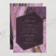 Dieses koordinierende Hochzeitsfest-Set mit abstrakten Agatmustern, texturiert mit Imitat-Kristallen und Highlights in glitzernden Imitaten Goldfolie sorgt für Glamour und Auftrieb. Auffallende Farbkombinationen, wie diese Suite mit ihrer luxuriösen Palette von abgestuften Trauben und Lila bis hin zu sanftem orchidem Rosa, schaffen den Hintergrund für die Stücke dieser koordinierten Kollektion. Diese elegante Probe Dinner Einladung beinhaltet alles oben mit einem sechseckigen, halbtransparenten Label, um Ihren Text zu halten. Eine Vorlage wird bereitgestellt, um Ihre Ereignisdetails einfach hinzuzufügen. Sehen Sie sich den Link Sammlung auf dieser Seite an, um alle passenden Elemente in diesem schönen Design zu sehen, oder suchen Sie ID827, um zusätzliche Farboptionen für dieses Design zu sehen.