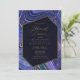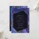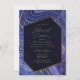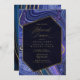 Dieses koordinierende Hochzeitsfest-Set mit abstrakten Agatmustern, texturiert mit Imitat-Kristallen und Highlights in glitzernden Imitaten Goldfolie sorgt für Glamour und Auftrieb. Auffallende Farbkombinationen, wie diese Suite mit ihrer nächtlichen Farbpalette von tiefdunkelblau bis weich violett, schaffen den Hintergrund für die Stücke in dieser koordinierten Kollektion. Diese elegante Probe Dinner Einladung beinhaltet alles oben mit einem sechseckigen, halbtransparenten Label in dunkelmarineblau, um Ihren Text zu halten. Eine Vorlage wird bereitgestellt, um Ihre Ereignisdetails einfach hinzuzufügen. Sehen Sie sich den Link Sammlung auf dieser Seite an, um alle passenden Elemente in diesem schönen Design zu sehen, oder suchen Sie ID827, um zusätzliche Farboptionen für dieses Design zu sehen.