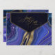 Dieses koordinierende Hochzeitsfest-Set mit abstrakten Agatmustern, texturiert mit Imitat-Kristallen und Highlights in glitzernden Imitaten Goldfolie sorgt für Glamour und Auftrieb. Auffallende Farbkombinationen, wie diese Suite mit ihrer nächtlichen Farbpalette von tiefdunkelblau bis weich violett, schaffen den Hintergrund für die Stücke in dieser koordinierten Kollektion. Diese Hochzeit Save the Date-Karte beinhaltet alle oben genannten plus elegante Kalligraphie auf einem schrägen, halbtransparenten Etikett, um Ihre Menüauswahl zu halten. Eine Vorlage wird bereitgestellt, um Ihre Menüdetails, Initialen und Hochzeitstag einfach hinzuzufügen. Sehen Sie sich den Link Sammlung auf dieser Seite an, um alle passenden Elemente in diesem schönen Design zu sehen, oder suchen Sie ID827, um zusätzliche Farboptionen für dieses Design zu sehen.