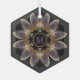 Ungewöhnliche Blütenmandala, farbenfroh und glänzend. Design für Ihre Hexagon Glas-Ornament und mehr.