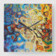 Abstrakt Art Yellow Orange Blue Wirbel Quadratische Wanduhr