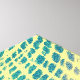 Auf einem gelben Hintergrund wird auf Leinendrucken eine Malerei abstrakter Rautenformen in Blau, Grün und lila aufgedruckt.