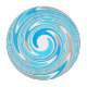 Dieses schöne runde Schneidboard zeichnet sich durch ein abstraktes Spiraldesign in Weiß, Grau und Blau aus.